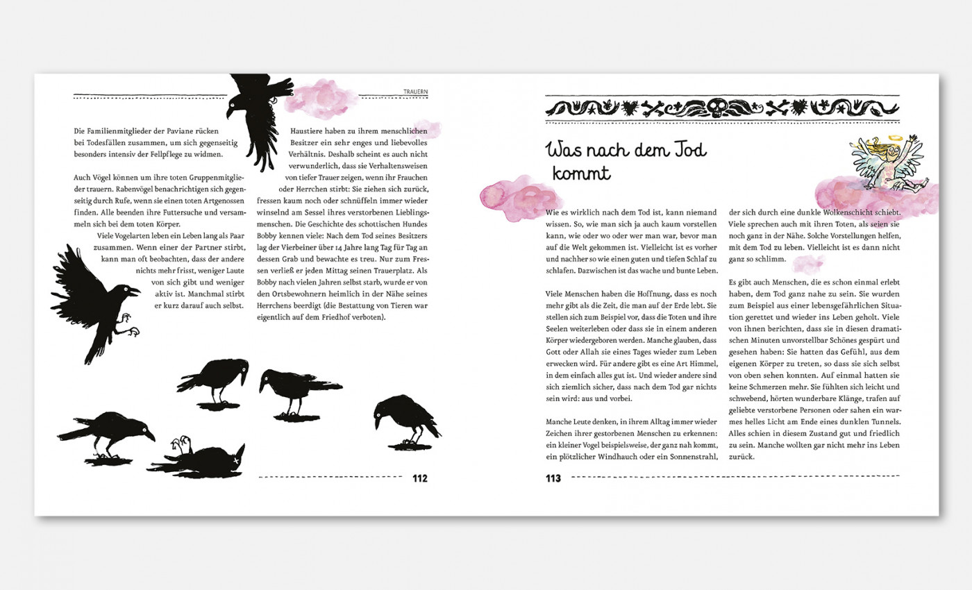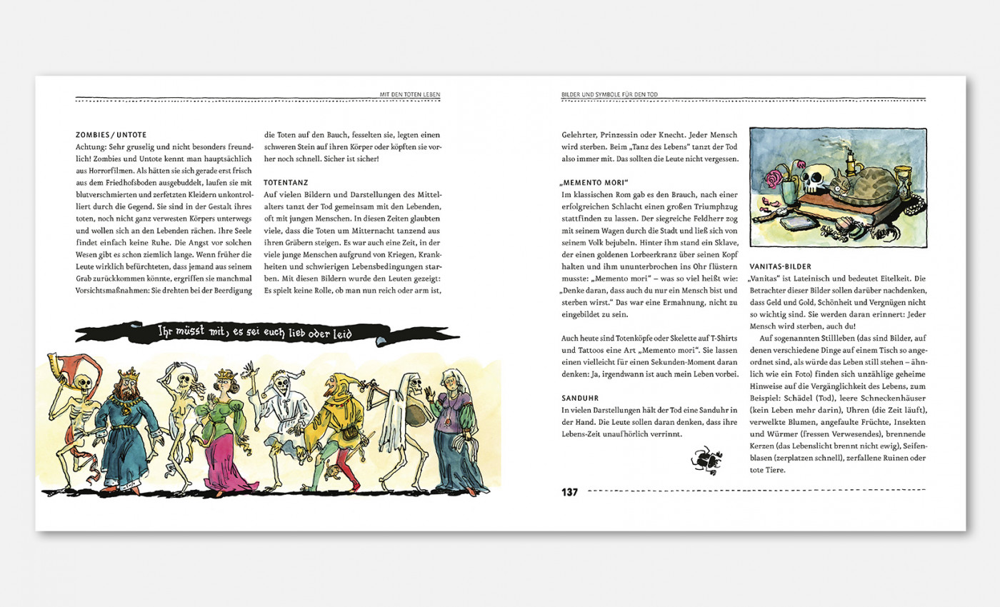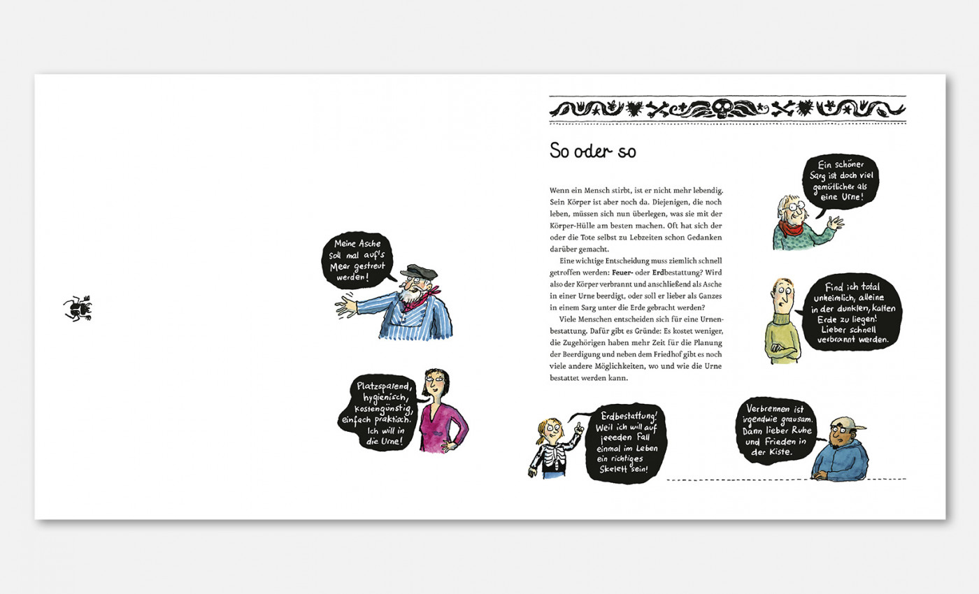 »LAUDATIO Sie gehören in unserer Kultur immer noch zu den Tabuthemen: Der Tod und das Sterben. Daher gibt es für Erwachsene oft fordernde Fragen, die nicht immer einfach zu beantworten sind, wenn Kinder plötzlich mit dem Ableben konfrontiert werden. Kinder sind nämlich in der Regel neugierig und wollen wissen, wie das ist mit dem Sterben – zum Beispiel wie es sich anfühlen könnte und was dabei eigentlich genau passiert. Dieses Buch von Katharina von der Gathen liefert mit viel Feingefühl und Achtsamkeit unzählige Informationen rund um dieses sensible Thema und schafft einen beachtenswerten Ausgleich zwischen Ernsthaftigkeit, Humor und Respekt, was die gewitzten Illustrationen von Anke Kuhl noch zusätzlich untermalen. Katharina von der Gathen, geboren 1973, studierte Sonderpädagogik und arbeitet als Sexualpädagogin und Autorin in Bonn, wo sie auch mit ihrem Mann und ihren vier Kindern lebt. Anke Kuhl, Jahrgang 1970, hat in Mainz und Offenbach das Zeichnen studiert und arbeitet seit 1998 in der Frankfurter Ateliergemeinschaft »labor«. Sie lebt mit ihrem Mann und zwei Kindern in Frankfurt am Main.«